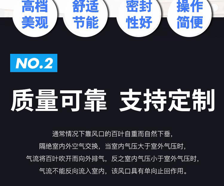 2. 風口外表裝飾面應平整、葉片分布應勻稱、顏色應一致、無在行的劃傷和壓痕。