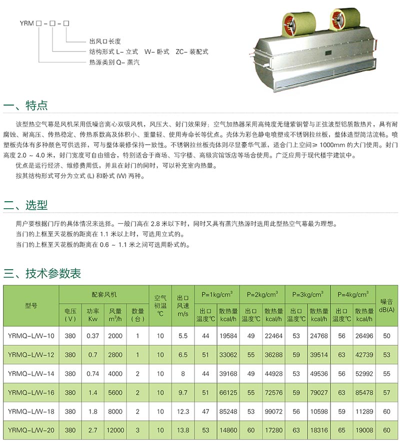 FM系列及 PFM-I、RFM-Ⅱ、RFMS系列風(fēng)幕機(jī)和熱水幕的拼音縮寫125或150是表示風(fēng)輪直徑900或1500是表示風(fēng)幕機(jī)本身的長度(單位mm)。