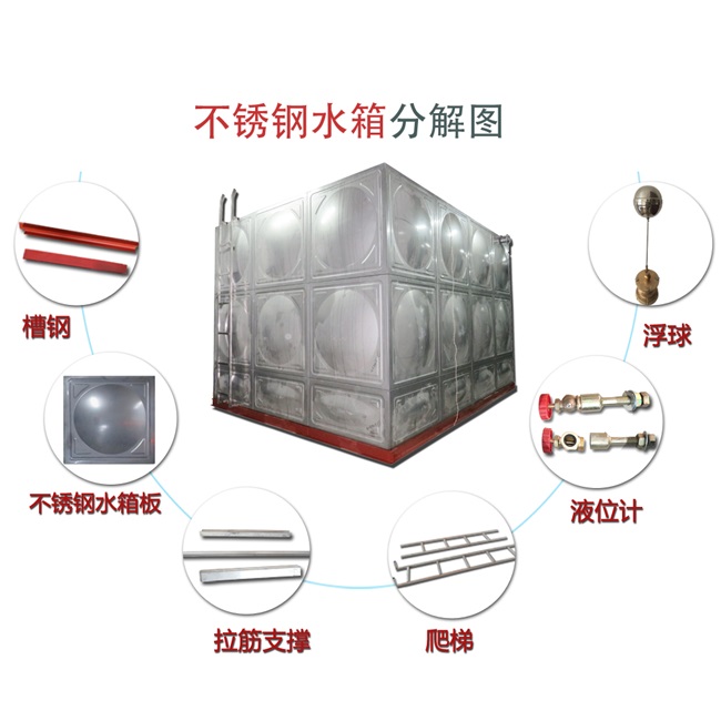 沖壓焊接不銹鋼水箱具有耐高溫、永不生銹、不透光、外觀美、全封閉式的優點杜絕了水的再次污染。