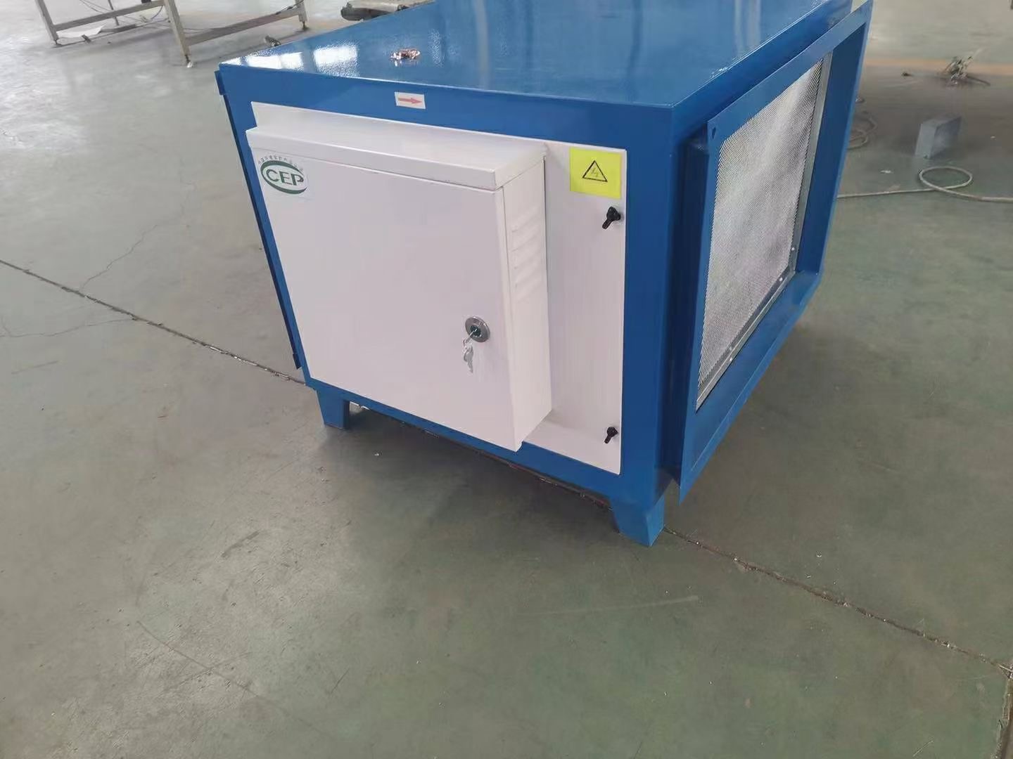 2、高效過濾消聲段:經過前端處理后,去除了大部分油煙,而逃逸的微米級油煙氣被后置的高效過濾段(粗過濾和精過濾)處理后大部分被過濾,余下的亞微米級的油霧微粒和煙氣中有毒有害物質及異味等進入低溫等離子體凈化段處理。