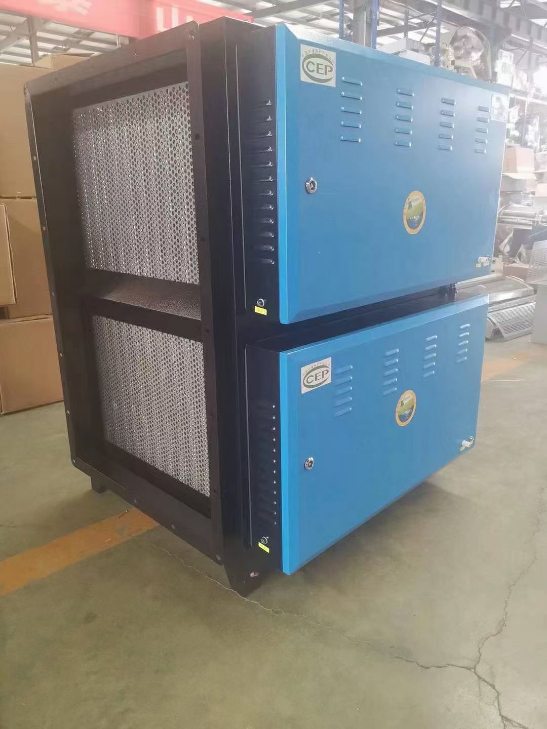 內部等離子電場極板采用優質AL1060鋁經專用模具一次性沖壓成型,確保電場精度高。