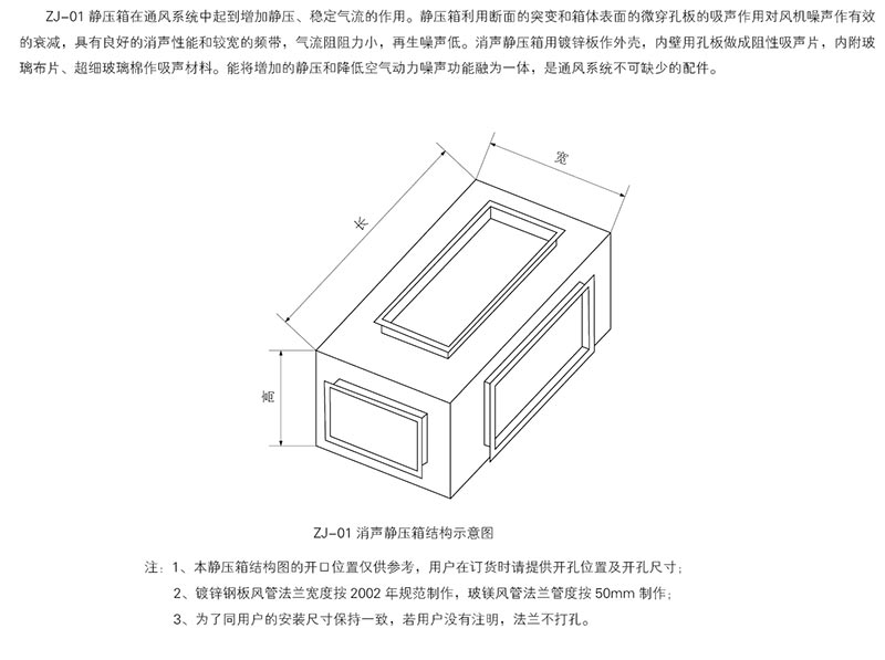 4、ZS靜壓箱可用來減少噪聲,又可獲得均勻的靜壓出風(fēng),減少動(dòng)壓損失。而且還有萬能接頭的作用。把靜壓箱很好地應(yīng)用到通風(fēng)系統(tǒng)中,可提高通風(fēng)系統(tǒng)的綜合性能;
